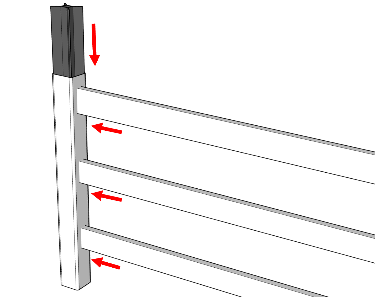 Built with treated and powder-coated steel, Royal Stables offers the look and layout of traditional vinyl ranch rail, but with the added durability and sturdiness of metal.